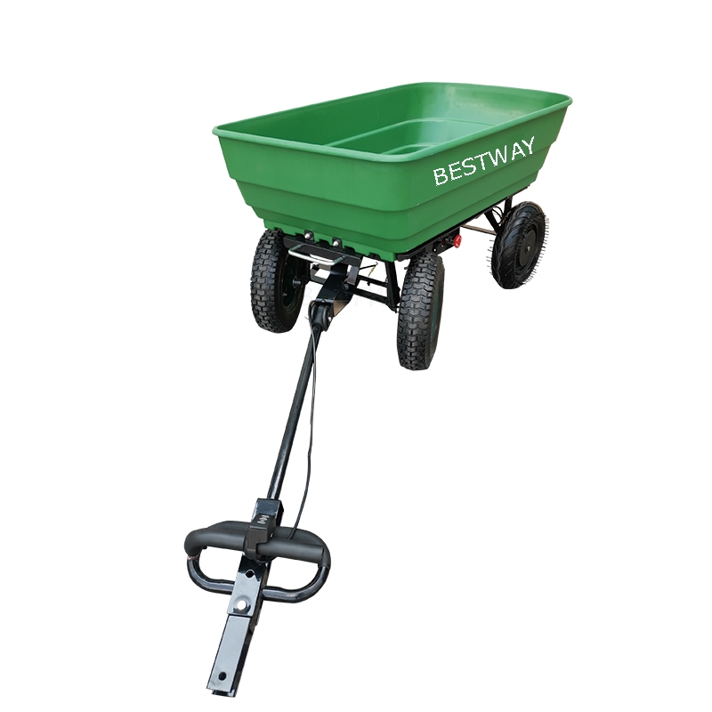 The electric garden wagon cart has a safe speed control feature that allows it to be operated continuously, with a shut-off/starter switch as needed. It can reach a maximum speed of up to 7 km/h, making it a convenient tool for transporting heavy loads across gardens, yards, construction sites, and other outdoor environments.