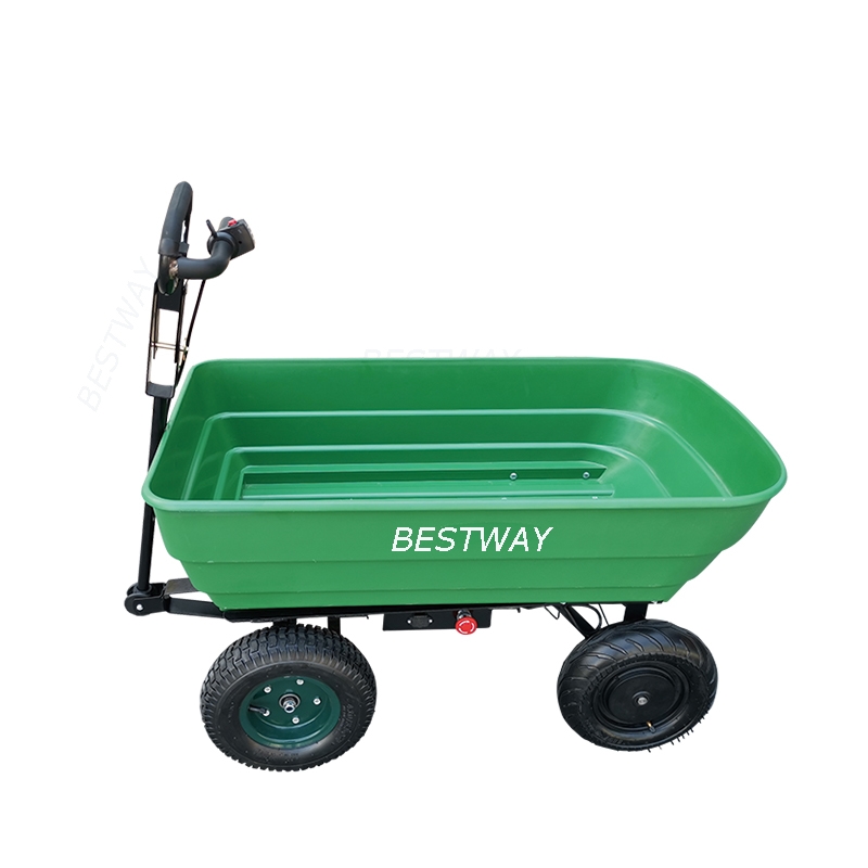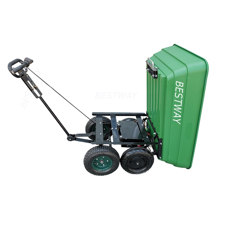 The Electric-Powered Garden Utility Cart has 24V DC 250W Battery Driven 250Kg Capacity & 7 Cu. Ft.